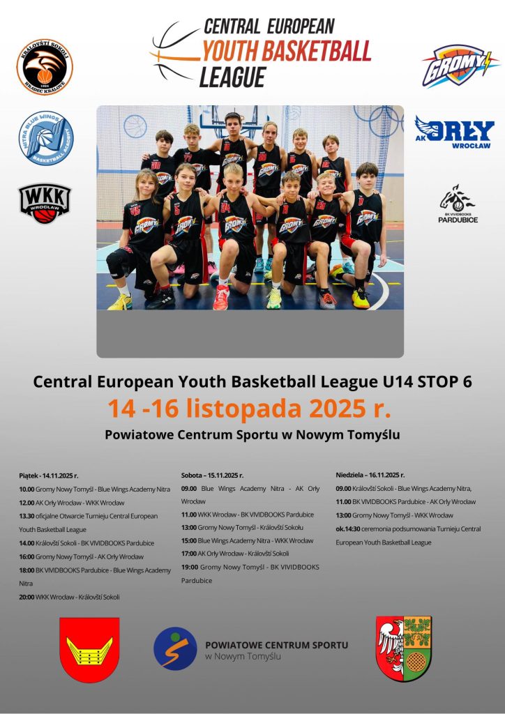 W dniach 14–16 listopada 2025 r. w Powiatowym Centrum Sportu odbędzie się Central European Youth Basketball League U14 – STOP 6!
